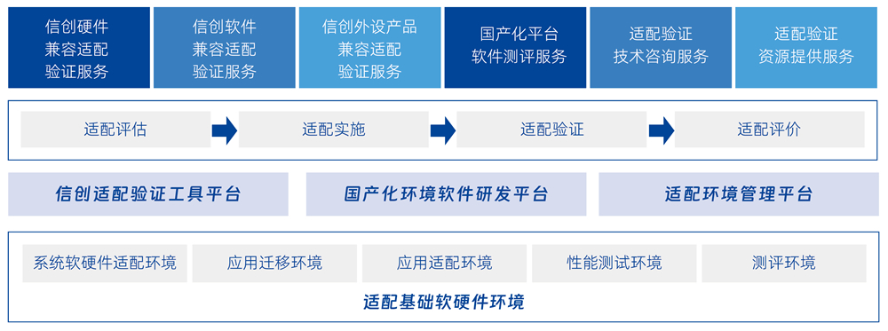 尊龙凯时人生就是搏信创适配验证服务,基于信创适配验证实验室,建设基于多种技术路线的适配测试平台和应用迁移平台。提供从自主创新系统软硬件产品的适配到应用软件的迁移、适配、研发、测试的全流程服务。包括硬件兼容适配验证服务、软件适配兼容验证服务、外设产品适配兼容验证服务、国产化平台软件测评服务、适配验证技术咨询服务、适配验证资源提供服务。